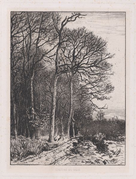 Editor: This is Adolphe Appian's "The Marshes of Burbanche," an etching from 1869. The intricate lines create a very tranquil, almost melancholic mood. What stands out to you in this piece? Curator: Appian's choice of marshes as subject matter during the rise of industrialization in France speaks volumes. While the bourgeoisie sought idyllic landscapes, artists like Appian turned to overlooked, seemingly mundane environments. What purpose could such scenery have served in the popular Parisian Salons of the time? Editor: So it was somewhat of a rebellious statement to depict something other than an obviously picturesque landscape? Curator: Exactly. Realism embraced a democratization of subject matter. Courbet had famously painted stones! And Appian, through his mastery of etching, elevates a muddy marsh, with peasants no less, into an image worthy of contemplation. Notice the carefully balanced composition. Editor: I see it now. It's not just a random snapshot. The trees are strategically placed, and the light catches certain spots in the water. Were prints like these accessible to a broad audience at the time? Curator: Relatively so. Etchings offered a more affordable way to collect art, spreading artistic ideas beyond the elite. Prints had socio-political implications. Artists using these to reach more audiences directly rather than galleries. Editor: I hadn’t considered that an etching could have such political undercurrents. Curator: That's the beauty of looking at art through the lens of social history. Appian's marshes reflect not only a place, but a specific moment and its values. Editor: I definitely have a new appreciation for Realism. It seems to be all about elevating the overlooked. Thanks!