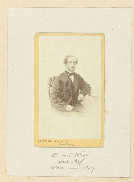 Christaan Marcussen created this portrait of H. Wesseling using a photographic process that was cutting-edge at the time. The image, while small, speaks volumes about the sitter's place in the world. The photograph's formality, from Wesseling's poised posture to his tailored suit, signals a certain social standing. Yet, the portrait also captures a palpable sense of humanity. There's a softness in his eyes, a hint of vulnerability that complicates any straightforward reading of privilege or power. Consider how the very act of commissioning a portrait was, in itself, a statement of identity and aspiration during this era. This image invites us to reflect on the relationship between representation and reality, between the public persona and the private self. It stands as a testament to the enduring human desire to be seen, remembered, and understood.