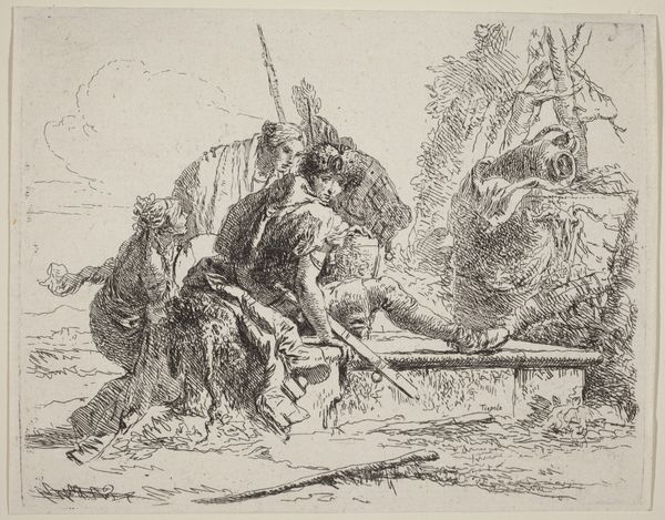 Giovanni Battista Tiepolo made "Standing Philosopher and Two Other Figures," using etching techniques sometime in the mid-18th century. Tiepolo was working during the height of the Enlightenment, a period marked by an emphasis on reason and individualism. But let’s think about who gets to be an individual in the 18th century? The figure of the philosopher, robed and bearded, has historically been coded as white and male. We see him standing, an active participant, while the other figures are passively reclining. What might it mean to center such a figure? Tiepolo’s etching engages with the construction of knowledge. Who has access to it? And who is excluded? What feelings do you have when you look at this image? Tiepolo asks us to question who is included and who is excluded from the pursuit of knowledge and philosophical inquiry.
