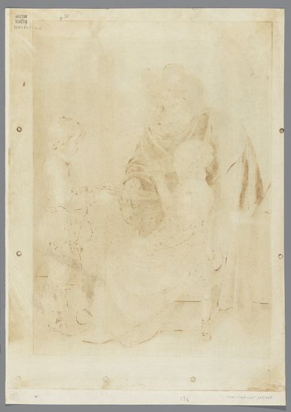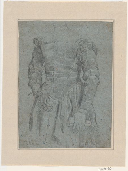 Editor: Here we have Albrecht Glockendon's "Ecce Homo," a drawing held at the Harvard Art Museums. It feels like a study, given its linework and the visible underdrawing. What strikes you about its creation? Curator: Well, I'm drawn to the physical act of drawing itself. Consider the cost and availability of paper and drawing implements during Glockendon's time. The labor, the intentionality... it all speaks to the value placed on this image. Editor: So, the drawing's value lies not just in the image, but in the material effort? Curator: Precisely. And who was Glockendon making this for? What social structures enabled him to produce it, and who would consume it? These are the questions I find most compelling. Editor: That reframes how I see it. Thanks! Curator: My pleasure.