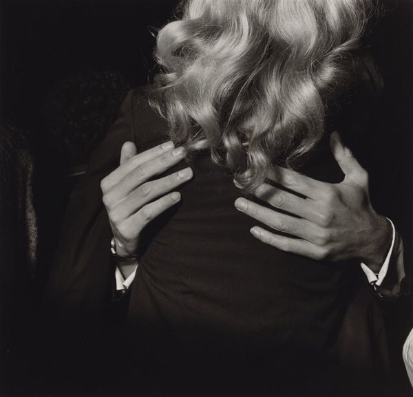 Jim Goldberg made this black and white photograph, "Cruise and Jersey Lu, Hollywood," sometime in the late 20th century. It shows a man holding a woman upside down in a seemingly loving embrace. This image prompts us to consider the public role of photography. Goldberg's work often explores marginalized communities and social issues. We might ask, what is the photographer's relationship to his subjects? How does the act of photographing someone affect their representation? The snapshot aesthetic can be seen as a challenge to the authority and artifice of traditional portraiture. It flattens hierarchies and allows for a more intimate and seemingly unmediated view of the subjects. To understand this photograph fully, one could consult Goldberg's other works, critical writings on documentary photography, and social histories of Hollywood. By examining these resources, we can gain insight into how the image functions as both a personal document and a commentary on the broader social landscape.