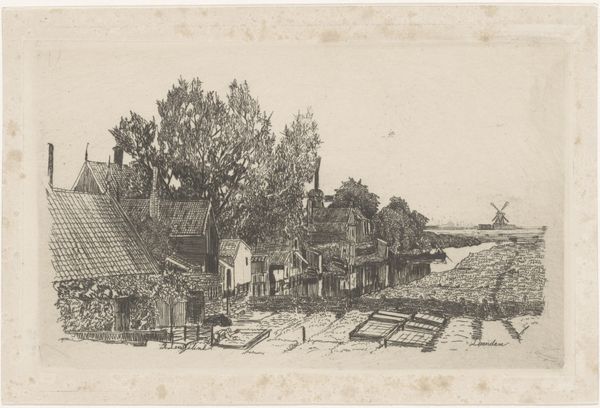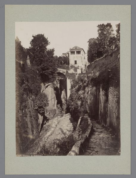 Curator: Let's explore this photograph, "Gezicht op enkele huizen in Murcia, Spanje," taken by Juan Laurent between 1856 and 1863. What strikes you about it initially? Editor: It's quite striking. The photograph offers such a clear and intimate depiction of daily life back then. It has a raw, almost unpolished feel. The house looks so humble. How do you interpret this work? Curator: I see this image as a powerful commentary on the social realities of 19th-century Spain. Look at the architecture, the simple structure, and the materials used. It speaks volumes about the economic conditions and the lives of the working class. Consider, too, that photography at this time was becoming more accessible but still represented a significant investment. What does it mean to have one's image captured and disseminated? Who had access to that technology, and whose stories were deemed worthy of recording? Editor: That’s a good point, I hadn't thought of it in terms of access and power. Does the landscape also contribute to this narrative? Curator: Absolutely. The relationship between the dwellings and the surrounding environment further emphasizes the connection to the land, to agriculture. How does the composition itself, with the house so central and immediate, invite a dialogue about space and belonging? And that cross. What does that symbolize for you, and for the culture that is on display here? Editor: Now I see it offers multiple layers beyond just being a pretty landscape! I appreciate the focus on how art intersects with societal power structures. Curator: Precisely! Examining these intersections gives us a deeper understanding, not only of the artwork, but of ourselves, and perhaps of society in a bigger way. Editor: Thanks. This has totally shifted my perspective!