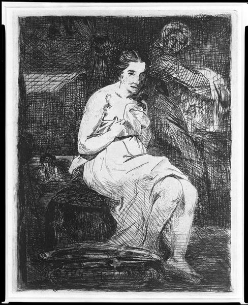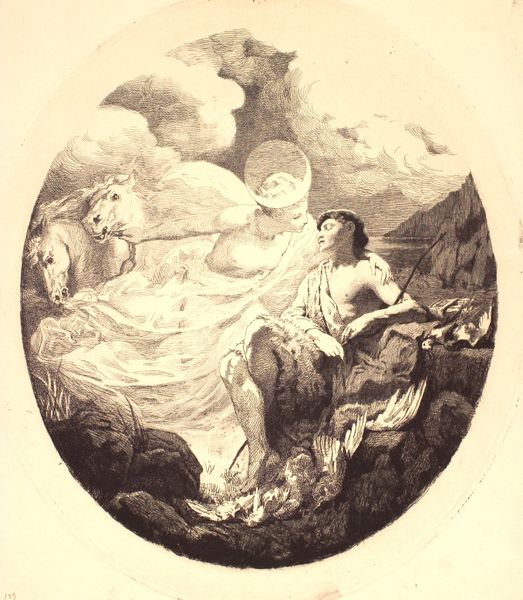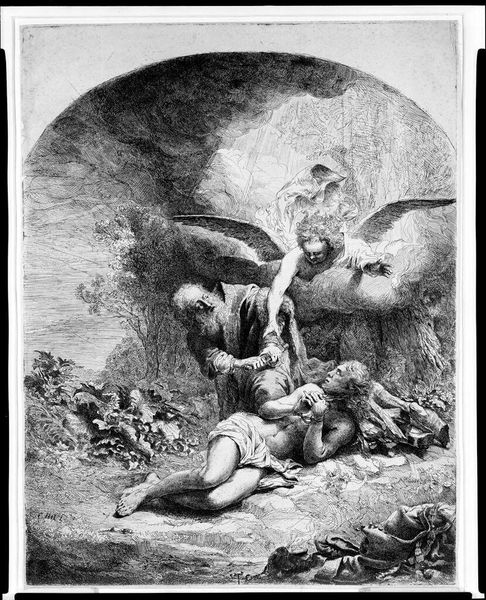 Editor: So, this is Ferdinand Bol's "Saint Jerome in the Cave." It's a very moody piece, all in black and white, and there's this intense focus on texture. What do you see in it? Curator: Well, it feels like a visual poem, doesn't it? Look at the way Bol uses light and shadow, almost like sculpting Jerome out of darkness. And that lion! It's not just a symbol, it's a furry, breathing presence. It makes me think about the stories we tell ourselves, and how sometimes the wildest parts of us can find peace. Editor: That's beautifully put. I hadn't thought about the "wild parts" finding peace, but it completely resonates with me. Curator: It is more than a picture; it is a story!