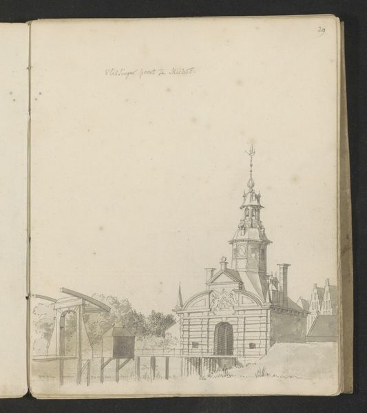 This is William Butterfield's "West Elevation of an Unidentified Church," an architectural drawing made with pen, ink, and watercolor on paper. Butterfield's design elegantly renders the proposed church's facade, showcasing the building's intricate brickwork. The alternating red and blue bricks form a diamond pattern, lending a decorative quality to the structure. The tower, with its steeply pitched roof, suggests a Gothic Revival influence, which was en vogue in the mid-19th century. But this was not merely an aesthetic choice, but one rooted in a revival of artisanal construction methods. The drawing itself signifies the labor involved in architectural design, a process of careful planning and visualization. Butterfield's attention to detail reflects a commitment to craftsmanship and a desire to elevate the built environment through thoughtful design. The materiality of the church, with its emphasis on brick, suggests a connection to local resources and regional building traditions. Butterfield's elevation reminds us that architecture is not merely about shelter, but also about the social and cultural values embodied in our built environment.