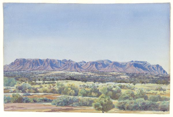 Albert Namatjira made this watercolour painting of the Central Australian landscape sometime in the mid-twentieth century. He’s built the image with these beautiful washes of colour, one layer on top of another, which is such a traditional watercolour technique. Looking at this painting, I can see how the light seems to bounce off the surface of the paper. Namatjira is working with very thin paint here, a light, almost transparent colour that lets the whiteness of the paper shine through. The mountain is built up from many layers of purple and brown, but each layer is light enough that it feels like the mountain is glowing. I love the way the trees are rendered with similar layering techniques: the artist uses very light touches of greens and blues to create an airy, ethereal effect. This work reminds me of some of the American landscape painters of the 19th century, particularly someone like Frederic Church. Both artists share an interest in capturing the grandeur of nature with a deep and almost spiritual reverence. Namatjira, like Church, seems to be saying that landscape painting is about more than just representation. It's about conveying a feeling, an emotional state that's both personal and universal.