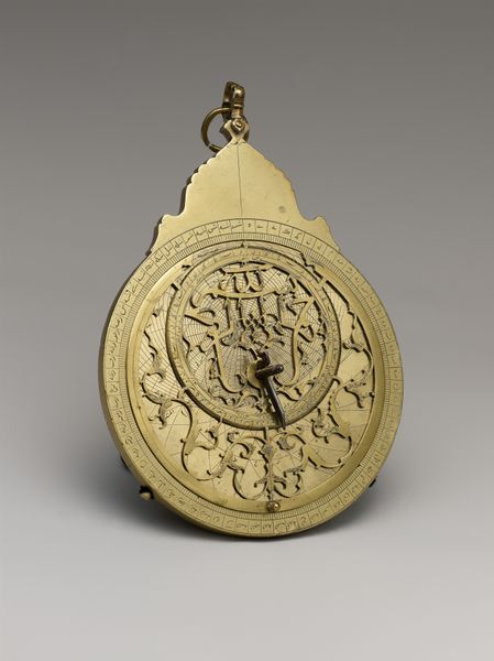 Editor: This engraved silver piece, titled "Foliate Letter J [reverse]," is possibly from the 18th or 19th century. It strikes me as both intricate and a little austere, perhaps because of the monochromatic color scheme. What do you see in this piece from a formalist perspective? Curator: The engraving exemplifies a fascinating tension between structure and ornamentation. Notice how the strong verticality of the 'J' is softened by the swirling foliate patterns that surround and penetrate it. The letter itself acts as a structural anchor, doesn't it? Editor: Yes, the 'J' commands your attention immediately, and yet it's almost swallowed by the surrounding decoration. It creates a visual push and pull. Curator: Precisely. And observe the border: a regular, repeating floral motif. This provides a secondary structural element, a frame within the oval frame. How does this framing device affect your perception of the central design? Editor: I think it emphasizes the density and controlled chaos within. The letter feels deliberately contained, almost pressured by the rigid border. Curator: An insightful observation. This deliberate containment amplifies the dynamic tension already present. Moreover, the silver itself—the materiality of the piece—lends a certain gravity, doesn't it? Its cool sheen both reflects and absorbs light, adding another layer of complexity. Editor: Absolutely. I initially focused on the letter but now appreciate the more subtle interplay of structure, surface, and light. Thanks, this was helpful in guiding my appreciation. Curator: It was a pleasure. Examining how form dictates function, or, in this case, expression, remains a valuable exercise.