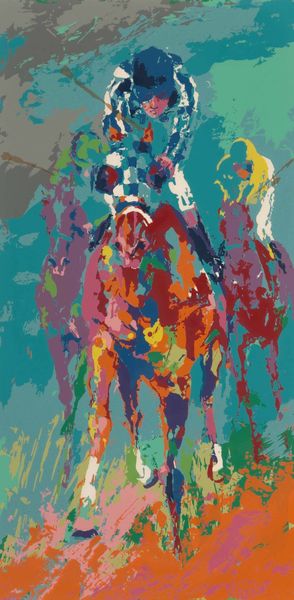 Curator: Alright, let’s discuss Andy Warhol’s “Cow” from 1981, a screenprint which, like many of Warhol's works, straddles the line between high art and popular culture. Editor: My first impression is a strangely comforting kitsch. The color palette—that soft blue background and the brownish-orange of the cow itself—it's like a pastel dream, or perhaps a warped advertisement. Curator: That juxtaposition is classic Warhol. He was always interested in the intersection of consumerism and art, challenging what we consider worthy of artistic representation. The “Cow” series directly followed his famous soup cans and celebrity portraits. Editor: It’s the process, really. It's just a cow but think about screenprinting at the time—how mechanical and reproductive it was. He used industrial techniques to mass-produce images of cows. Was he elevating the working class's everyday life, or flattening it? Curator: I think both. He took an animal essential to the food industry—a symbol of rural, working-class America—and reproduced it on a mass scale, much like the products of that very industry. He exposes the commercialization, creating a very knowing critique. Editor: Exactly! The materiality and the context clash. There’s also an element of labor involved—the physical act of creating a screenprint, the labor that went into animal husbandry and food production – that gets lost in translation when we encounter it on a gallery wall. Curator: I'm also fascinated by the democratization of art that Warhol promoted. Through screenprinting, he made art more accessible and affordable. Everyone could own a "Cow", not just wealthy collectors. Editor: True, although ownership itself becomes another layer of consumption, doesn’t it? Still, I have to say the "Cow", despite its simplicity, provokes an interesting dialogue about value and production. Curator: Absolutely, it remains a compelling exploration into art's role in society, pushing us to confront the mundane, mass-produced aspects of our lives, and in the most colourful way imaginable. Editor: Indeed, it’s an exploration of production, consumption, and even taste, wrapped up in that undeniably eye-catching Pop aesthetic.