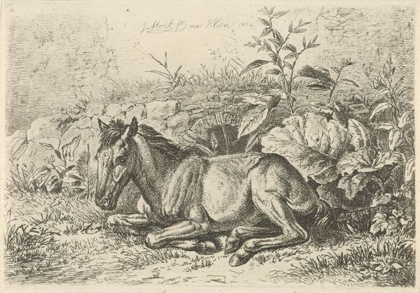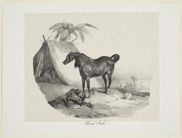 Théodore Géricault created ‘Cheval Arabe’ using lithography, a printmaking technique allowing artists to create multiple originals from a stone or metal plate. The visual texture achieved through lithography gives a sense of immediacy, almost like a direct drawing, which is critical to the image’s impact. The tonal range, from deep blacks to subtle grays, conveys the soft, sandy environment. Consider that Géricault, though fascinated by the exotic, never actually travelled to the Middle East; he likely based this image on second-hand accounts. This distance is interesting given that lithography, by its very nature, enables the wide distribution of images, potentially fueling both curiosity and, perhaps, misrepresentation. The material qualities of the print also invite us to think about the social context in which it was made. It makes us question how mass-produced images can shape our understanding and perception of different cultures and places. It reminds us to consider both the artistry and the potential biases embedded within such works.