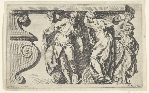 Editor: This is Andrea Boscoli's "Scenes from Ancient History, after Polidoro da Caravaggio," dating sometime between 1560 and 1608. It's an etching, rendered in these warm sepia tones. The frieze-like composition gives it a timeless quality, almost like something unearthed. What strikes me most is the emotional range on display, even in this relatively small scale. How do you interpret this work? Curator: The beautiful thing about history, especially ancient history rendered anew, is how it acts as a mirror, reflecting our present anxieties and triumphs back at us. Boscoli, working long after the height of the Renaissance, is already looking back at it with a bit of melancholic yearning, don't you think? This image, a copy of a fresco cycle by Polidoro da Caravaggio, layers Renaissance ideals atop Roman virtues, like palimpsest skins over our souls. Editor: That idea of layers is intriguing. So, you’re saying Boscoli isn't just recreating an ancient scene but also commenting on the artistic lineage leading up to his own time? Curator: Precisely. He's in dialogue with the past, both the classical world depicted, and the Renaissance that rediscovered it. The etching itself allows for a wider dissemination of these heroic narratives, a democratizing impulse in a way, even if those narratives themselves are rooted in power and conquest. Do you see it that way? The print becomes almost like a meme, spreading the gospel of ancient virtue, albeit filtered through a Renaissance lens. Editor: I do now! I hadn't thought of it in those terms before. Thanks to Boscoli’s print, I can engage with interpretations of classical art more personally. Curator: Art making does exactly that; it is an iterative journey and not just the finish line. Art is nothing but a timeless conversation, full of opinions, where we all get to say a word or two.