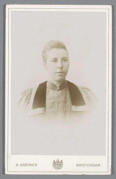 This portrait of a woman with her hair up, and a brooch, was made with photography by E. v.d. Kerkhoff. What strikes me is the light. It's not just light, it's light hitting surface, texture, and the mood that surfaces create. Look closely and you will see, the light is almost palpable, like you could reach out and touch it. What I love about this piece is its subtlety; the restrained palette creates a gentle and intimate experience. The slightly mottled surface makes me think about the passing of time, the beauty of something which has been handled and cherished. This piece feels like it belongs in conversation with the work of other photographers of the time, like Julia Margaret Cameron, who were also interested in the expressive potential of the medium. It’s a reminder that art is always an ongoing dialogue, a conversation across time and space.