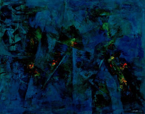 Alexander Bogen made this painting, Reflection, probably in oil, by the looks of it, with a somber but spirited approach to mark making. You can see it as a back and forth, an interaction, between the artist and the oil paint. There’s a moody, almost gothic feel to the colour palette, dominated by these deep blues and greens, but then those tiny touches of red, like embers, give the work a real spark. I’m drawn to the way the paint is layered; thin in places, almost transparent, and then thicker, more opaque, creating a real sense of depth. Check out the horizontal band running across the middle – it’s almost like a horizon line, but then the ‘reflection’ below is just as murky as the sky above. Bogen seems to know his way around Rothko - that hovering dark mass. The painting holds that tension between seeing and feeling, knowing and not knowing. Like all good paintings, it’s more a question than an answer.