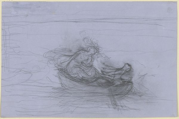 Victor Müller made this drawing, "Sitzende Frau, vor der ein Mann kniet, den Kopf in ihren Schoß gelegt," with graphite on paper. Müller was a German painter associated with the late Romantic and early Realist movements. He lived through a time of great social upheaval, witnessing the rise of industrialization and the Revolutions of 1848. This sketch embodies some of that revolutionary spirit. The vulnerability of the man kneeling before the woman contrasts sharply with traditional representations of masculinity. Müller may have been influenced by the burgeoning feminist movements of the time. The composition, with its focus on human emotion and vulnerability, departs from the academic art that was so prevalent at the time. To fully understand this work, it would be helpful to know more about the artist's personal life, his political affiliations, and the specific cultural context in which he was working. Research into the art criticism of the period might give insight into how this image would have been received.
