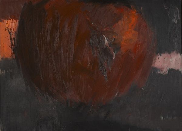 Editor: This is "PLASTA AUTORRETRATO," a self-portrait by Ramon Oviedo, created in 2004 using oil paint. There’s an intensity to it, almost like a figure emerging or perhaps dissolving from a fiery red background. What do you see in this piece? Curator: The most compelling element is the interplay between figuration and abstraction. Note how the artist uses impasto to build texture, creating a palpable sense of form struggling to materialize. The chromatic intensity of the red grounds the figure in a state of becoming, which is visually compelling. Editor: So, you're focusing on the material properties and how the artist used them. How does that influence the overall feel of the portrait, specifically? Curator: The strategic use of impasto and color fields actively destabilizes a straightforward reading of the figure. Instead, it calls our attention to the formal qualities: the rough texture, the contrasting values, and the movement suggested by the drips. The artist challenges the notion of fixed identity through these formal elements. The portrait challenges conventional notions of representation. Editor: That's a perspective I hadn't considered. The breakdown of form through texture and color adds an interesting layer of ambiguity. Curator: Precisely. Rather than conveying a static likeness, Oviedo explores the very process of constructing identity through artistic means. The red is both a void and a grounding point, yes? What would you surmise from the tonality and hue? Editor: Perhaps that red alludes to the artist’s fervor? Thank you for the thorough formal analysis! Curator: Indeed, a fervent introspection. Understanding the language of form empowers one's appreciation.