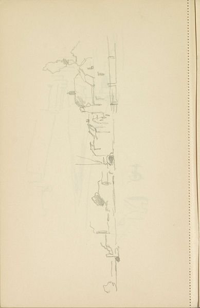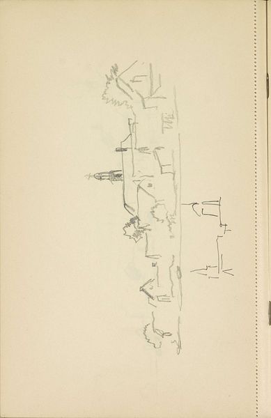 Editor: This is "Straat aan een kanaal," or "Street on a Canal," a pencil drawing by Cornelis Vreedenburgh, made sometime between 1890 and 1946. The sketchiness of the drawing almost makes it feel like a fleeting glimpse of a memory. What do you see in this piece? Curator: I see the residues of urban development, right? The canal was such a crucial artery for the burgeoning capitalist centers of the Netherlands. You've got the architecture barely sketched in, almost as if Vreedenburgh is focusing on something else entirely. The street isn't just a location; it's a site of constant social and economic exchange. Do you get a sense of that activity here, or something else? Editor: It's funny you say that. I mostly notice the quietness. It feels like a scene captured before or after the bustle. Like everyone's gone inside. Curator: Exactly! And I think that gets at something really important here. If Vreedenburgh is drawing a street that’s also a space of absence, then what does that say about the experience of modernity itself? Perhaps he's questioning the increasing pace of life and commerce? A silent critique, if you will, rendered in soft pencil. It invites us to consider what’s *not* shown. Editor: I hadn't considered it as a form of social commentary. I was just looking at the aesthetic. It's amazing how seeing something like a street scene, so seemingly ordinary, can reflect wider societal themes when you start digging. Curator: Art constantly mirrors the values and anxieties of the period, shaping our understanding and questioning our presumptions. Even, or perhaps especially, when that mirror seems to offer an incomplete reflection. Editor: I see it now. I guess what I’ll take away is to really question everything, even simple sketches like this one. Curator: And maybe realize that the simplest sketch may tell the largest story.