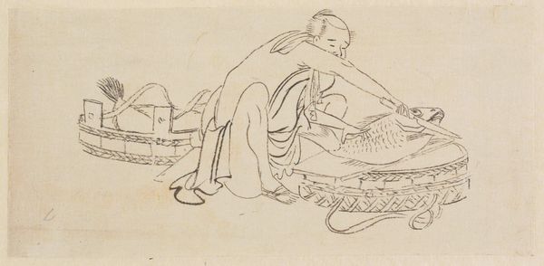 Editor: We are looking at “The Sixteen Luohans” a drawing from 1634 by Chen Xian. It’s created using ink and watercolor. The immediate feeling I get is one of quiet contemplation, but with a spark of interaction between the figures. What story do you think this artwork is trying to tell? Curator: It whispers to me of inner peace sought in shared moments. Chen Xian captures the essence of the Luohans – enlightened disciples of Buddha – not in grand pronouncements but in the subtlety of their exchange. It’s as if we are invited into their private world. Do you notice how the calligraphic inscriptions seem to become part of the drawing itself? Editor: Yes! The writing feels so integrated; I almost didn't register it as separate. Is it common to see the artist's writing as a key compositional element in drawings like this? Curator: Absolutely! In Chinese art, calligraphy is not just text but a visual art form in its own right. Here, it adds layers of meaning and texture. It almost becomes a dance between the visual and the written. Chen Xian invites us to read the picture, and to see the writing. Doesn't it also make you wonder about their relationship? Editor: It does. It makes me wonder what wisdom they might share. Curator: The beauty is perhaps in its open-endedness, wouldn't you say? It invites our projections, our own stories of connection and enlightenment. Editor: Definitely! I find myself seeing more in it each time I look. Thanks, that's given me so much to consider. Curator: My pleasure! May it spark countless stories within you.