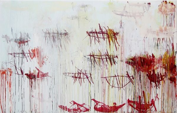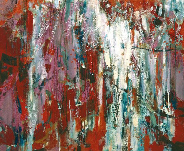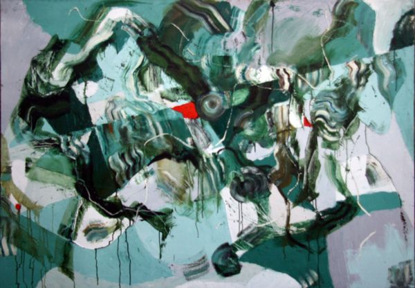 Nemanja Vučković made this painting, Lifeline, with dynamic color and gestural marks. It's like he's throwing paint at the canvas, but in a controlled way. I love the way the colors mix and mingle. There's this vibrant green as a base, but then you see pops of red and orange peeking through, creating a lively push-and-pull effect. The white streaks and splatters create a sense of movement and energy, like the painting is still in the process of becoming. Those pools of black and drips feel like a grounding element, weighing the composition down, adding depth. I'm reminded of Joan Mitchell, another artist who wasn't afraid to let loose with paint. Yet, like Mitchell's work, this piece embraces the beauty of imperfection and reminds us that art is an ongoing conversation, a constant exploration of ideas and emotions. It's like Vučković is inviting us to join him on this journey, to embrace the messiness and ambiguity of life, and to find our own lifeline in the process.