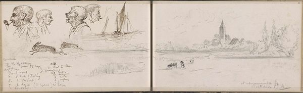 Editor: This intriguing pencil drawing by James Ward is entitled "Studies of Boats on a Riverside." The use of delicate lines creates a serene atmosphere, almost like a whisper of a scene. What catches your eye most when you look at it? Curator: As a historian, I see Ward engaging with a popular theme of the time: the picturesque landscape. The rising middle class fueled a demand for idealized visions of the English countryside. These weren't just innocent depictions of nature, but statements about land ownership, national identity, and the artist's own position within that social structure. Notice how these "studies" appear informal, but there’s an underlying order, presenting nature as something that can be observed, controlled, and ultimately, owned. Editor: That's fascinating. I hadn't considered the idea of "ownership" in such a tranquil scene. Do you think the medium, pencil on paper, plays a role in that sense of control? Curator: Absolutely. The portability of a sketchbook allowed artists to capture these "fleeting moments" in nature and bring them back to the studio to refine. The very act of sketching— selecting a viewpoint, framing the scene—reinforces that power dynamic. Also, think about where sketches like these would end up – perhaps in a portfolio for potential patrons to review. Editor: So it’s not just about the beautiful image, but about the social context surrounding its creation and reception? Curator: Precisely. Ward isn't just showing us pretty boats. He’s participating in a visual dialogue about the ideal England and his place in representing it. The seeming casualness is a performance. Editor: I never would have looked at a simple sketch like this and thought about social dynamics of that period. That adds a whole layer of depth to my understanding of it. Thanks! Curator: My pleasure. Looking closely helps us decode not only the artist's intentions, but also the values of the society they inhabited.