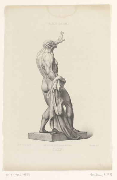 Curator: Standing before us is "Statue of Mercury with a putto at his feet," a drawing by Claude Mellan, created sometime between 1631 and 1637. It resides here at the Rijksmuseum. Editor: My first impression is of stillness, a classical tranquility rendered with surprising delicacy given the subject's typical association with vigor and trade. The restrained palette contributes to that, a monochromatic dance of light and shadow. Curator: Indeed. This drawing provides an interesting perspective when viewed through the lens of artistic patronage and power structures of the era. Mercury, traditionally a symbol of commerce, communication, and even trickery, gains further nuance when seen against the backdrop of burgeoning merchantilism, religious power and colonial expansion during the baroque period. Mellan's choice to depict the god in such a serene state invites contemplation on the relationship between power and divine grace. Editor: Yes, I find the pencil work utterly compelling. Notice the texture achieved through delicate hatching and cross-hatching, defining musculature and drapery with superb precision. The fall of light and the construction of form are so considered. Note, for instance, how Mercury’s posture, that subtle contrapposto, enhances the overall sense of poised dynamism. Curator: The choice of representing Mercury alongside a putto— a representation of childish innocence - also provides a symbolic contrast that might be interpreted in various ways. Considering contemporary socio-political realities, what stories about childhood, mentorship and even class division were being transmitted and validated in those depictions of mythological subjects. Editor: Fascinating. Perhaps that's why, for me, the appeal also lies in Mellan's successful handling of line and tonal gradation which grants the drawing a unique surface tension—simultaneously inviting and self-contained. It really rewards close looking. Curator: And that engagement speaks, I think, to the enduring legacy of art that sparks continuous re-evaluation. It allows us, from our contemporary standpoints, to investigate history and cultural values in a dynamic way. Editor: Absolutely. It’s the marriage of historical insight and artistic finesse that allows "Statue of Mercury..." to continue provoking debate, centuries after its creation.
