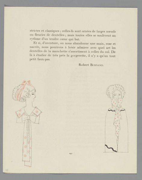 This is 'Gazette du Bon Ton' by George Barbier, made around 1915 - a line drawing with watercolour. The colors are very restrained, just enough to animate the forms, like a blush rising to the surface. The figures feel light, almost like they could float away - like paper dolls. The mark-making is spare, allusive. The dresses rendered with a few well-placed lines and a scattering of dots, evoke a sense of texture without really describing it. It reminds me of Matisse, but with more of an eye for fashion than form. I love the ambiguity, how the image hovers between representation and abstraction. It feels very contemporary to me, in that way. You could compare this to Dufy and his fashion plates. Like Barbier, Dufy explored the intersection of art, design, and modern life. Both artists embraced a sense of playfulness, reminding us that art doesn't always have to take itself so seriously.