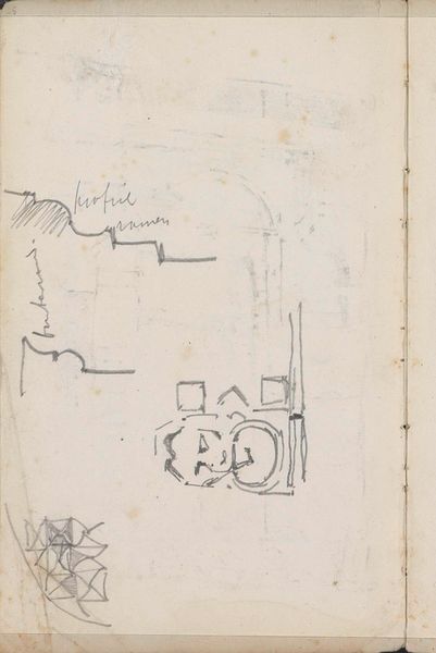 Carel Adolph Lion Cachet made this sketch of a book cover and seated figure on paper. Cachet worked in the Netherlands during the late 19th and early 20th centuries, a time of significant social and political change. The design of the book cover incorporates geometric shapes and what appears to be stylized lettering, reflecting the influence of the Arts and Crafts movement, which sought to elevate craftsmanship and design in response to industrialization. The seated figure could be an allegory for learning and literacy. The Dutch cultural context of the time, with its strong tradition of printing and publishing, combined with a growing interest in social reform, might have influenced Cachet’s choice of subject matter. Understanding the social conditions that shaped Cachet's artistic production requires further investigation into the cultural institutions, artistic movements, and socio-political forces that were at play during his time. By exploring archives and libraries, we can gain a deeper appreciation for the social and institutional contexts that gave rise to this work.