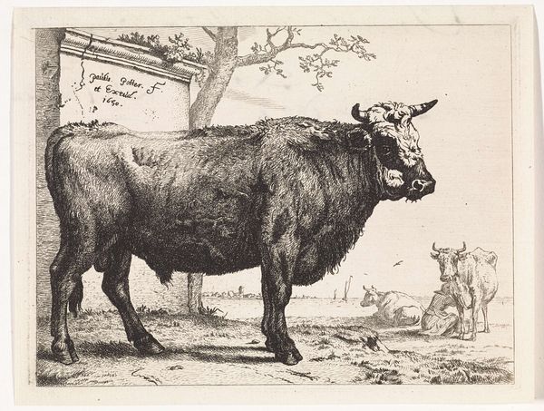 This etching, made by Johannes Janson in the 18th century, depicts a bull on a riverbank, a seemingly simple pastoral scene. Yet, lurking beneath the surface is a tapestry of symbols as old as civilization itself. The bull, throughout history, has been a potent emblem of virility, strength, and untamed nature. From the Minoan bull-leaping rituals to the Egyptian Apis bull, this animal has been venerated and feared. Even in the biblical story of the Golden Calf, we see the bull as a symbol of raw power and idolatry, a primal force that can both create and destroy. Here, the bull stands proudly, a master of its domain. There’s a clear sense of dominance. Consider the pose - the bull, though an ordinary farm animal, brings to mind ancient gods and mythical beasts. It connects us to a deep, shared past, and the image, etched in lines, echoes through time, a reminder of the enduring power of symbols.