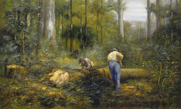 Curator: Camille Pissarro painted "The Sower, Montfoucault" in 1875. He captured the rural scene en plein air, working directly in front of his subject. What are your initial thoughts? Editor: My first impression is its striking ordinariness. There's a quiet dignity in the labor, painted in a way that feels both realistic and somehow dreamlike, given the style and technique. Curator: It is interesting to analyze that seeming "ordinariness." Pissarro chose to represent the toil of agricultural labor at a time when industrialization was rapidly changing the social landscape of France. His use of Impressionistic techniques is important—observe the loose brushstrokes and the focus on light effects. He used materials to highlight working class activity in its essential and everyday form. Editor: Precisely, the fragmented brushwork serves a dual purpose. It gives the impression of movement, the constant activity inherent in farming, while also softening the edges, so that everything is unified within this hazy atmosphere. It emphasizes form as energy, almost. How does this depiction engage with or depart from Realist traditions of the time? Curator: Pissarro, while associated with the Impressionists, certainly drew from Realism's focus on everyday life. However, Realism often aimed for stark objectivity. Here, there's a softening—almost a romanticization—through Impressionistic techniques, yet always acknowledging the true cost and implications behind these practices through the composition, perspective and subject choice. The artist isn't critiquing; it is almost reverent to the role of working within a landscape. Editor: It's that reverence which elevates the work. There’s this sense of fleeting moments, a dance of light and labor that becomes almost timeless in the application of the colors, a moment perfectly captured. The earth, the human contribution of toil and the light all create an impact and unified scene that makes us want to keep it with us. Curator: It presents to the viewer not only the material reality of rural work, but asks that the moment becomes understood and remembered with deep emotional understanding. Editor: A vivid slice of life, beautifully composed, which, through the effects of light, form, composition and application, makes an important mark and keeps this memory living.