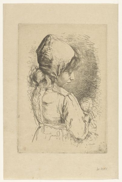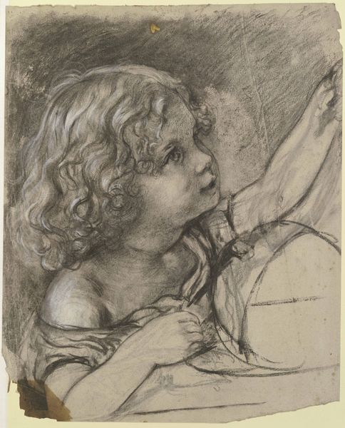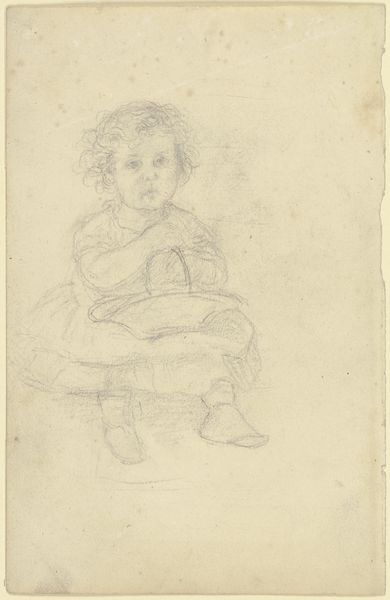 Editor: Here we have a pencil drawing on paper titled "Child Holding Hands above Head," by Samuel De Wilde. It seems quite tender. What do you see in this piece, considering its time and the possible subject? Curator: It's a fascinating image, isn't it? We can examine this from a socio-political angle, wondering about the position of children, particularly within the context of labor, or their commodification in portraiture of this time. Who was this child? Was this simply a depiction of innocence or perhaps a subtle reflection of the socio-economic realities of the era? Editor: So you're saying that even a seemingly simple sketch might carry some undercurrents related to larger social themes? Curator: Precisely. And the raised hands, consider what that signifies. Is it freedom, surrender, prayer? It depends on how the child understands that role in a larger world around him, and if it's a direct, complicit representation, or simply how an artist views a child subject in an innocent, private space. Does it reveal the sitter's world outside this sketch? Editor: It hadn't occurred to me that it could mean those things. It does make me wonder what sort of conditions this child lived in, who their parents were. The drawing style is soft and seemingly non-judgmental, making it a sympathetic portrait. Curator: Exactly, and who benefitted most from it? De Wilde might have seen their work as observational and technical studies, but by situating that work today we need to confront all those aspects of power at play when depicting an individual who had so little autonomy in a society structured around class, labor and the male gaze. We need to engage with these critical issues as we engage with art history. Editor: That definitely makes me look at it with a different lens. It shows art’s profound relation with all elements of society, not only aesthetically, but intersectionally. Curator: Absolutely. By combining the visual with historical context, we can begin to unpack art's relationship with a society structured on inequity, oppression, and class, that will hopefully dismantle it through our critical inquiry.