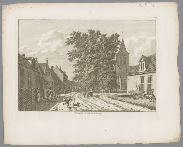Curator: What a strangely calming perspective, looking down this perfectly ordered street. Almost clinical, in its precision. Editor: It’s a print dating back to 1782, entitled *Gezicht op de Breite Strasse, te Mannheim*, or *View of the Breite Strasse in Mannheim*, created by the Klauber brothers. They were engravers, so this meticulous rendering is very much their specialty. Curator: You can really see it—the careful linework. There's a wonderful quality to the light, too, even without color. It feels airy. Was Mannheim known for this particular... urban planning vibe? Editor: Absolutely. Mannheim was essentially rebuilt in the 18th century with a grid system. Think of it as an attempt to impose rationality and control onto the urban landscape, reflecting the Enlightenment ideals. The "broad street" was, therefore, both a literal and symbolic representation of progress and order. Curator: Order... right. It almost feels a bit *too* ordered, doesn't it? Like something’s missing, like...rebellion, perhaps? I’m itching to throw a splash of bright colors into the scene, just to wake it up. A protest march would fit nicely, a lovely contradiction in terms. Editor: Precisely. That tension is palpable. The print highlights a very specific ideal of civic life—organized, predictable, easily governed. But of course, that ideal often comes at the expense of individual expression, of spontaneous happenings, of the messiness of real life. Curator: Which artists have tried to portray. I guess that’s why a print like this, which so cleanly lays everything out, becomes oddly fascinating. Editor: Right, there’s the illusion of perfection presented within an imperfect reality. These streets aren't just thoroughfares; they represent power dynamics etched in stone. Curator: Leaving us with this quite exquisite etching—both lovely and subtly unsettling. Editor: A great reflection of a moment where urban planning aspired to perfect order, captured forever in ink.