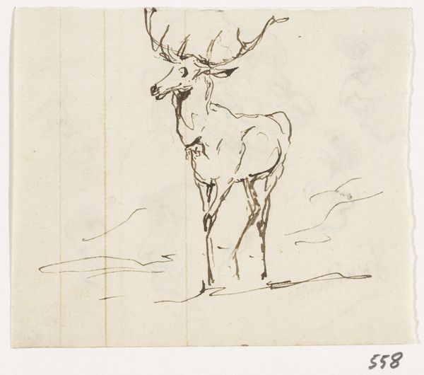 This sketch of deer and heads was made by Johannes Tavenraat, using pen in brown ink, brush in brown wash, and pencil on paper. The fluid strokes of the pen define the figures, while the brown wash adds depth and volume, creating a play of light and shadow. The artist's skillful handling of the brush captures the essence of the deer, from the muscularity of the stag to the graceful lines of the does. The work has a sense of immediacy, as though it were captured on site. It invites us to consider the relationship between the artist, his materials, and the natural world. Such works on paper were central to the artistic process, and the market for art at this time. Ultimately, this sketch encourages us to appreciate the value of craft, labor, and materiality in artmaking. It is a reminder that art is not just about the final product, but also about the journey of its creation, with the artist's hand directly involved in the making of the art object.