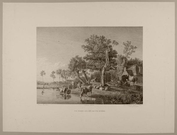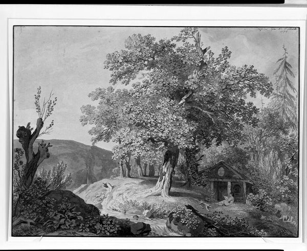 Curator: Alright, let's dive in. This is Isaac Robert Cruikshank’s "Landscape with Erupting Volcano," housed here at the Harvard Art Museums. A striking monochrome work, no date is specified. Editor: Whoa, it's like Pompeii vibes, but sketched with nervous energy. All that smoke and chaos juxtaposed with these tiny, stoic figures in the foreground. Curator: The volcano, likely Vesuvius, dominates the composition, and it speaks volumes about the cultural fascination with natural disasters and the sublime in the 19th century. Editor: Sublimely scary! You know, it makes me think about how we romanticize danger from a safe distance. Like disaster tourism, but in art form. Curator: Precisely! It highlights our ongoing negotiation with nature's power. The composition shows us looking at the scene from a safe remove, much like our own viewing of this artwork today. Editor: I guess, in a way, every landscape is a self-portrait. This one’s just got more fire and brimstone. It’s a dark and intense image. Curator: I concur. Cruikshank has captured something profoundly unsettling, reflecting societal anxieties about the uncontrollable forces around us. Editor: Gives a whole new meaning to "hot art," doesn’t it? I think it is a perfect glimpse of how we find excitement in the most unlikely—and perilous—of places.