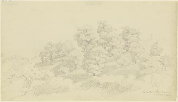 Curator: Louis Eysen’s drawing, "Felling of Trees," created in 1868, presents us with an intriguing plein-air study rendered in pencil on paper. What are your initial impressions? Editor: Immediately, I’m struck by the sheer density and the implied labor. It feels like a portrait of relentless activity, of natural resources being actively shaped, consumed… almost exploited. There's a weight to all that grey pencil. Curator: I appreciate your read on labor here. Indeed, Eysen produced this sketch at a pivotal historical juncture, marked by intensifying industrial demands and consequential natural resource consumption. This prompts me to contemplate his positioning on broader questions tied to industrialization, ecological consequences, and societal transformations. Was he documenting an inevitable progress, or offering a subtle commentary on ecological change? Editor: That tension feels inherent in the materiality. The graphite itself comes from the earth, is extracted, processed. Here it is used to document the felling of trees – another raw material, now visualized through industrial tools. You almost feel the grain of the paper pushing back against the artist's hand, asserting its own material presence amidst the act of artistic production and material extraction. Curator: I agree. Let's consider the perspective offered. By depicting these uprooted trees, isn't he compelling viewers to reflect upon their inherent link to the environment? This raises poignant concerns related to gender roles in both society and environmental preservation, doesn't it? After all, women were frequently tasked with overseeing domestic economies closely tied to their local environments. Editor: The choice of a drawing is crucial, too. Pencil sketches were often preliminary works. The artist likely planned to come back to this, potentially in paint. In that sense, even this relatively simple act, the creation of an etching, holds a potential or promise yet unrealized; in its material, there remains a feeling of something pending. Curator: Your material-oriented perspective has profoundly shifted my reading of this piece. Thank you for the valuable exchange. Editor: Likewise! Considering art through the lens of its tangible means of creation offers powerful insights.