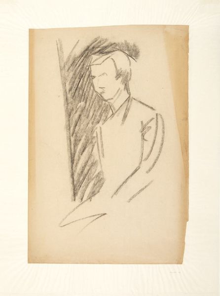 Curator: Let’s take a look at this pencil drawing titled "Portret van een man" created by Jac van Looij, sometime between 1865 and 1930. What are your initial thoughts? Editor: My first impression is one of starkness. The intense contrast between light and shadow, and the unfinished quality give it a somewhat melancholic mood. The artist clearly used confident strokes to capture this subject, probably in short span of time. Curator: I agree. Considering the period in which van Looij was active, this piece resonates with similar character studies from that time where shifting socio-political landscapes led artists to grapple with representing individuality. There’s almost an anxiety etched in this face. Do you feel the same? Editor: The medium certainly amplifies that sense. Pencil lends itself to immediacy and to a certain austerity, especially given the rather muted tone. It makes me think of the cost of producing work during that period and who had the opportunity for art production. Was Van Looij wealthy or part of a social support system? How was the pencil produced? Was there an industrial component or was this artisanal in some manner? Curator: Fascinating questions! These pieces prompt broader conversations regarding labor, artistic creation and class structures during the industrial revolution that have evolved through history. It makes me think, who gets their portrait rendered? Editor: And how materials change not only how the art appears, but what segments of the population has an access to create the art. This informs how we might reconsider it and create intersectional interpretations. Curator: Agreed, it is powerful to contemplate those questions in relation to this evocative portrait by Van Looij, even with our limited details about its production. Editor: Indeed, analyzing how artworks are conceived and produced alongside their sociopolitical implications opens avenues for more holistic, more challenging perspectives.
