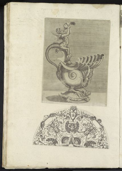 Editor: Here we have Percenet’s “Vaas met gezichten,” or "Vase with Faces," dating from the mid-18th century. It’s an ink and engraving on paper currently held at the Rijksmuseum. I am immediately struck by the ornamentation! All those little faces. What do you make of it? Curator: Well, my dear, it’s a dance between order and… well, let's call it joyful chaos. It feels almost like a dream I once had after eating too much cheese. It’s from the Baroque period, you see, and while the classical-realism style imposes a structure, a certain controlled elegance, those faces are quite lively aren't they? Makes you wonder what they are whispering, or about to sing! Does it bring to mind any specific characters? Editor: Not really. They are quite subtle. More like adornments to me. I guess it fits with the decorative arts designation. Curator: True! This work feels like it teeters between art and design, right? In the 18th century, distinctions weren't so firm. Artists and artisans mingled much more freely, swapping ideas like gossip. Makes me think of the great houses that these things lived in. The vase sits on a shelf looking down at masked balls. I’m making things up, of course! Editor: Ha! I love that. Looking at it in that light, I feel more interested in the cultural context. How all those people wearing masks might have viewed this vase and others. Thanks! Curator: Exactly! It's the 'why' someone created this, that pulls us back. And brings us forward again too. Art is never truly still, you know.