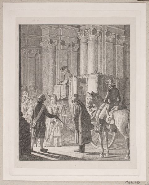 Antonio Capellan created 'Germanicus, pl. III' using etching, a printmaking technique, where lines are incised into a metal plate to hold ink. The process itself is labor-intensive, demanding great skill in both design and execution. The intricate lines and fine details highlight the artist's control over the medium, as well as the labor involved. Etching gained popularity as a medium for both artistic expression and the dissemination of information, particularly during the Enlightenment. The use of etching allowed for a relatively efficient way to reproduce images, making art and ideas more accessible to a broader audience. Capellan's choice of etching aligns with the print medium's ability to circulate images and stories, reflecting a shift towards a more democratic and accessible art world. Ultimately, understanding the material and the process behind this etching gives us insight into the cultural and social context of its creation, blurring the boundaries between craft and art.