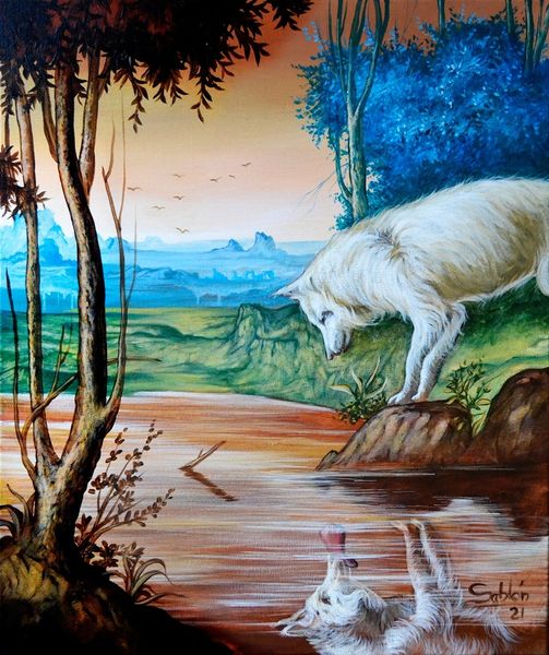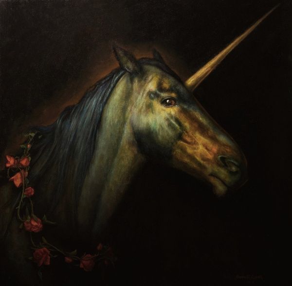 Konstantin Korobov’s painting presents a unicorn in a forest, evoking centuries of symbolic weight. The unicorn, traditionally a symbol of purity and grace, appears here with an unusual, almost stern, human-like face, set against the backdrop of an ancient, moss-covered forest. The unicorn motif can be traced back to ancient Greek and Roman texts, where it was described as a fierce, wild ass with a single horn. Over time, especially during the medieval period, the unicorn became deeply intertwined with Christian symbolism, representing Christ and divine grace. Tapestries and illuminated manuscripts often depicted the unicorn as a creature of mythic power. The solemn, almost melancholic expression given to the unicorn in this painting lends a psychological depth, engaging viewers on a subconscious level. The artist plays with our collective memory, evoking both the familiar and the unsettling. This image resonates with the past, as the unicorn continues its journey through our cultural consciousness.