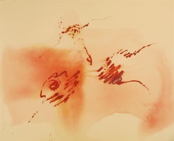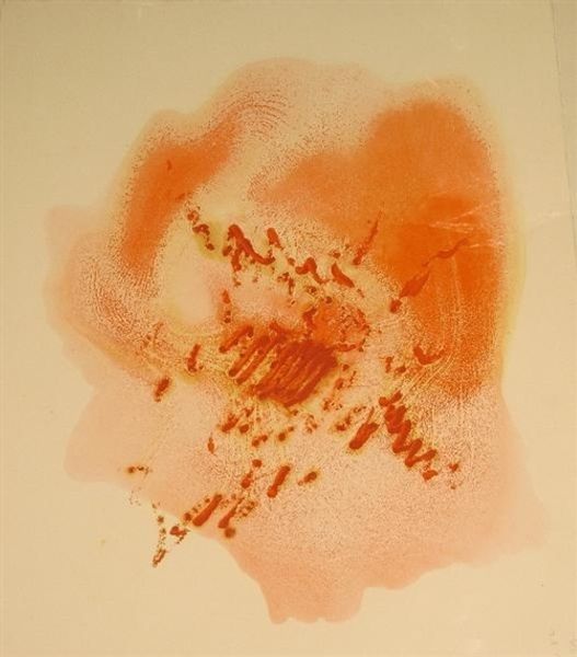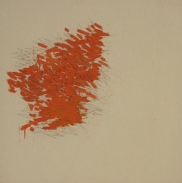 Rene Duvillier made Cronos 35 with orange paint, and maybe even a spray gun by the looks of it! I think he was letting the process guide him. You can see the texture in this painting isn't about thick globs, but more about how the color settles. It's like he's coaxing the paint to find its own shape. Notice the lines on the left, like rain but made of dashes, and then how they get thicker towards the center. They have such direction, like they're being pulled down by something! Duvillier reminds me a little of Joan Miró, just letting the subconscious spill out onto the canvas. It’s like art becomes this open conversation where ideas are always morphing and reshaping. I love that in art, there's no one right answer!