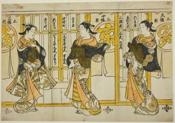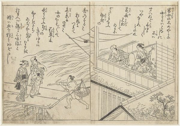 This print, "Calling upon the Lady Tamakazura," was created by Hishikawa Moronobu in Japan, using woodblock printing – a technique deeply rooted in the culture of its time. Consider the material, paper, and the process used to make it. These prints weren’t made with a single strike, but with multiple blocks, each carrying a different color. See how the lines are crisp and definite, yet the colors remain flat, subtly layered. This suggests a division of labor, with the artist, block cutter, and printer each bringing their skills to bear on the final image. It’s easy to think of this artwork in terms of design, a commodity for consumption. But look closer, and you see the hand of the maker – the evidence of craft, of time, and of skill. The beauty of this artwork comes not only from its visual impact, but from the artistry invested in its production. By considering the material, processes, and social context of its creation, we can truly appreciate the depth and complexity of this image.