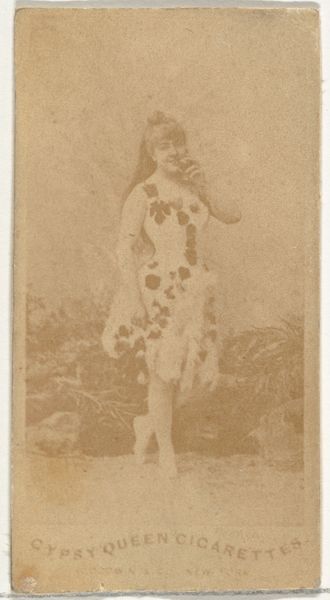 This card of "Theo" from the Actors and Actresses series, was produced by W. Duke, Sons & Co. as a promotional piece for Duke Cigarettes. Executed with the sepia tones characteristic of its era, it evokes a sense of nostalgia. The figure of Theo, adorned in a floral dress, blends softly with the background, creating a semiotic interplay between the performer and the product. The choice of sepia diminishes the visual impact, reducing it to its most fundamental structure of light and shadow, creating a dreamy effect. The composition employs the technique of soft focus, popular at the time, obscuring details. Yet, this aesthetic choice also functions as a cultural signifier, reflecting the era’s fascination with romanticism and a retreat from stark realism. The card’s material form is as significant as its subject. Printed on thin paper, it was designed for mass distribution and immediate consumption. As such, the card functions within a structural system where art becomes an everyday commodity. The interplay between form and content invites us to see how art can both reflect and shape cultural values.