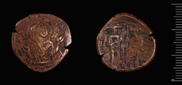 Editor: So, this weathered copper coin is a Copper Assarion of Andronikos II. It’s fascinating to hold something so old. What stories do you think it could tell, if only it could speak? Curator: Ah, if only! I imagine it whispering tales of Byzantine power struggles, the rise of Venice, and maybe even a lost love affair or two. It's more than just currency; it's a tiny portal to a different time. Look closely – can you imagine the artisan carefully crafting the details, each strike of the die a deliberate act? Editor: It's amazing to think about. It makes me want to learn more. Curator: Me too! Every time I see an object like this, my imagination soars. What was it like for the hands that touched it, for the people who used it? We can only imagine!