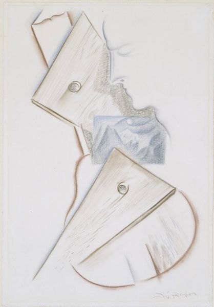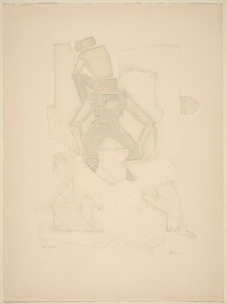 Curator: Welcome. Before us, we have Paolo Boni’s "Contrariete", an intriguing work executed in print, pencil, and watercolor on toned paper. Editor: It's like looking at geological strata, but fragmented and almost ghostly. There’s a lightness to it, even with the dense geometric shapes. What strikes me is the evident hand of the artist in rendering and piecing this all together. Curator: Absolutely. Consider Boni's positioning within a lineage of abstract expressionism. How does this fit, or perhaps challenge, conventional narratives around artistic production? There is an ambiguity here in the way it exists. Editor: It does defy a straightforward reading, doesn't it? Look at the visible pencil strokes, the layering of textures. This isn't just about the image; it's about the *making* of the image, laid bare for us. We see labor; we perceive artistic intention with immediacy, do we not? Curator: And I'm compelled to wonder how its reception changed across the decades, from a period so focused on originality and heroic gestures to our own time, with a much more knowing public eye. It provokes questions about art’s cultural work. Editor: And think about the materials themselves—pencil, watercolor, paper. These are humble, accessible mediums. There is nothing lavish. The artistic process, as made apparent, relies upon everyday means, elevated to abstraction by Boni's skilled manipulations. It also shows how traditional materials remain vital. Curator: The "toned paper" is very intriguing here. Consider the context in which such a selection was, perhaps, more available or more commonplace, shifting how the work would have initially been encountered. It highlights questions surrounding value and aesthetics. Editor: It all underscores that tension, right? The humbleness and the intellectual exercise. I love that juxtaposition. I see how material and concept become truly inseparable here. It's not only the finished form, but that beautiful, raw materiality which fascinates us. Curator: Agreed. Boni encourages that precise mode of inquiry and forces us, productively, to keep thinking about the art object, the art world, the culture, at the time of the work’s release—and our current position relative to it. Editor: Indeed. "Contrariete" reminds us to appreciate not only what we see, but what it took to make it and why the method has so much value.