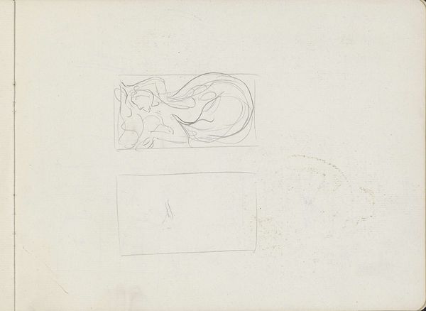 Editor: This is "Ontwerp voor een venster met een zittende figuur met schaal," a pencil and paper drawing made between 1900 and 1903 by Antoon Derkinderen. It's clearly a study for a stained glass window, and I’m immediately struck by the simplified lines and the almost classical, contemplative mood it evokes. How do you interpret this work? Curator: This drawing offers a fascinating glimpse into the social and political currents swirling around the fin de siècle. The stylized, almost ethereal, depiction of the figure, combined with the scales, points towards deeper questions about justice and equilibrium, themes highly relevant within the context of early social reform movements. Editor: Justice and equilibrium... I hadn’t thought of it that way. I was focused more on the art nouveau style, but I see what you mean about justice now that you mention it. The figure looks almost like she is weighing ideas. Curator: Exactly! Consider the symbolism within the context of growing labor movements and women's suffrage. Derkinderen might be using classical allegories to comment on contemporary power structures and the need for societal rebalancing. What does the “window” represent in that frame? What does it mean to look "through?" Editor: So, by representing justice as a figure within a window, the artist might be suggesting that justice itself needs to be brought to light, made more transparent, or perhaps be more accessible to all. I didn't realize art nouveau could be so engaged. Curator: Art Nouveau, often dismissed as merely decorative, can be incredibly insightful when viewed through a critical lens. It was, after all, a style embraced by many who sought to break from academic traditions and express a more modern sensibility, including concerns about social progress. I wonder about this piece being for a stained-glass window. Who was meant to see it and what statement would that placement make? Editor: That’s a great point! Thinking about the original location adds a whole other layer to the meaning. I'll definitely look at Art Nouveau differently now. Thank you. Curator: Likewise, your observation about the contemplative mood made me see that side even more. It's a dialogue, always, with the artwork and each other.