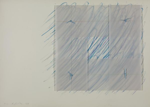 Editor: This untitled print by Robyn Denny presents overlapping green and purple rectangles. I find the composition quite stark. What historical or cultural narratives might inform our understanding of this work? Curator: The hard-edged abstraction so prevalent in the 60s was often presented as apolitical and purely formal. However, by examining the social context, the grid can be seen as a metaphor for societal structures, sometimes restrictive. Denny’s ambiguous spatial relationships challenge those structures, don’t you think? Editor: That's a fascinating point. So, the seeming neutrality is actually a subtle critique? Curator: Precisely. Think of the rigid societal expectations of the time, particularly regarding gender roles. The blurring of boundaries within the composition may reflect a desire to disrupt those expectations. Editor: I never considered abstraction in that way before. It gives the piece a whole new layer of meaning. Curator: Exactly! Art becomes a potent tool for social commentary when we look beyond the surface.