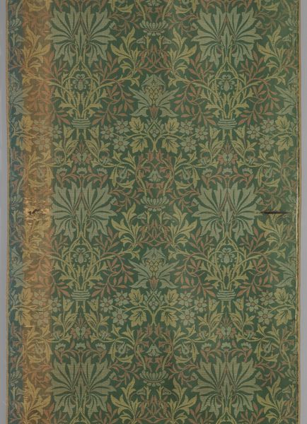 Curator: I find myself immediately drawn into the soft, aged coloration and subtle opulence of this "Panel" made of silk. It is from the 18th century and currently residing at the Minneapolis Institute of Art. The piece exudes elegance even through the aged hues of its material. Editor: Yes, my immediate impression is of faded grandeur. One can almost hear echoes of the past rustling through its threads. Considering the social history woven within this textile—who made it and for whom? Curator: It's listed as made by an anonymous author. A look at the process involved is crucial. Imagine the skilled labor needed to produce this complex weave in the 18th century. The weavers would have worked long hours, transforming raw silk into a symbol of status for some aristocratic household. Editor: Precisely! Silk itself was a global commodity tied to colonial economies and power dynamics. A panel like this was not merely decorative; it communicated social status, wealth, and potentially, the exploitation upon which that wealth was built. Who would display this silk textile panel, and what was the occasion of the work to begin with? Curator: Absolutely, that's a crucial point. Considering the baroque style patterns, featuring lush foliage, such textiles were often integrated into lavish interior designs of wealthy elite households or even ecclesiastical contexts. Editor: Think of the gendered nature of the textile industry then as well—the labor predominantly done by women, yet often unseen and unacknowledged. Examining this piece can provide insight into labor history and the broader cultural narrative surrounding craftsmanship. Curator: Right. And how might this surviving piece shape consumption practices or our relationship to "antique" silk? How does a damaged piece become an object on display? The display itself is a form of consumption. Editor: We are viewing an aestheticized object, which invites contemplation on labor, global trade, gendered workforces, class differences, and historical inequities that were embedded in such productions. I find its presence here raises interesting points about the endurance and transmutation of social meaning through time. Curator: Indeed, each frayed edge is a testament to its age and a marker of the lives and conditions of those who came into contact with the piece, either by creating, owning, consuming or eventually viewing it. Editor: It's a material witness. Thank you for such astute analysis of this beautiful textile, underscoring the ways this 'Panel' serves as an intricate historical and artistic marker of those times.