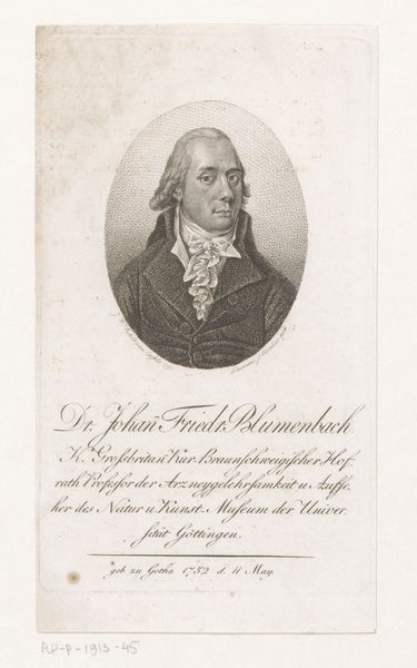 Editor: So, this is the "Portret van Friedrich von Matthisson," made in 1801. It's a drawing by Wilhelm Arndt, using pencil and charcoal. It strikes me as very formal, a picture of a distinguished man ready to judge some matter. What do you see in this piece that I might be missing? Curator: The formality you observe is intentional and reflects the Neoclassical style popular at the time. Consider the context: portraiture, especially drawings like this, served a crucial public role. It was a way of constructing and disseminating an image, and status of an individual, shaping public perception. Think about who had access to such portraits – they weren't mass-produced like photographs are today. Who was Matthisson, and why might Arndt have chosen to portray him this way? Editor: Ah, that’s a good point. I'm assuming Matthisson was someone important? And the way he is depicted served to cement that status? Curator: Precisely. Investigating Matthisson reveals he was a prominent poet. Arndt's choice of a monochrome drawing, and the Neoclassical style itself, deliberately echoes classical antiquity, imbuing Matthisson with a sense of timeless intellectual and moral authority. What impact might such representation have had on how people viewed Matthisson and his work? How does it contribute to the social and cultural hierarchy? Editor: So, it's not just a portrait; it's a statement about his role in society, created and reinforced through visual language. Interesting! I never considered that it's doing cultural work. Curator: Exactly! And think about the museum's role in displaying this portrait today. How does placing it on display impact our understanding of both Matthisson and the art of portraiture in the early 19th century? Does it perpetuate or challenge the original intentions behind its creation? Editor: Wow, that really shifts my perspective. It is not enough to consider the style or even the sitter, it’s also the place in society and history it all inhabits. Curator: Exactly, and understanding that gives a much deeper insight to what the art meant, means, and can mean!