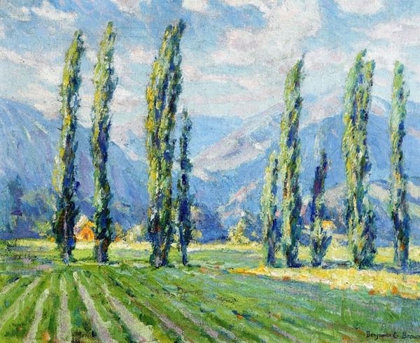 Armand Guillaumin, sometime in the late 19th or early 20th century, made this painting of the Pontcharra valley with oil on canvas. The way he's dabbed on the paint, it's like he's building up the scene, brick by brick, or maybe note by note. Look at the field in the foreground, how it shimmers with these flicks of ochre and brown. It's not just a field; it’s a buzz of energy, almost humming. Then your eye wanders up to the trees. They're solid, sturdy, but even they are made up of a thousand little gestures, a thousand touches. I mean the whole thing just breathes, and lives. And those mountains in the back? They are like soft giants, watching over everything. There is something about the way he built this up, like he didn't want to make too much noise. It’s not like Monet, but there's something gentle and humane in it. Like the guy wanted to leave a light footprint.