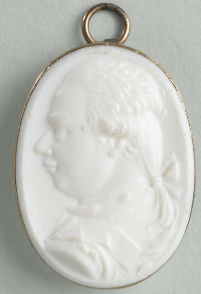 Curator: Looking at this Cameo Locket from the late 18th century, I am struck by its intimacy. The delicate ceramic and small size suggest a personal connection, perhaps a token of affection or remembrance. Editor: Yes, there's something incredibly tender about it. The milky white figure against that pale lilac background – it's like a whispered secret, an almost ghostly presence preserved in this little oval frame. I'm curious about the process – what does creating a cameo in ceramic involve? Curator: Well, it’s believed that this was created by the Wedgwood Manufactory, renowned for its Jasperware. The creation of Jasperware, and therefore this locket, required an incredibly precise process. This involved a unique mixture that, when fired, produced a matte, unglazed surface, perfect for intricate relief work. The layering of contrasting colors, particularly the white relief on a colored ground, was essential to their process. Editor: Thinking about that matte surface, you almost expect to feel the cool touch of the ceramic as you handle it. I imagine these pieces as precious and incredibly delicate. This locket, intended to be worn so close to the skin, tells you so much about consumption habits. Do you believe these kinds of personal items had other functions beyond sentimentality? Curator: Absolutely. The Neoclassical style, quite popular then, reflected the socio-political fascinations with antiquity. Pieces like this showcased the owner's cultural awareness. This wasn't just decorative; it was a declaration of belonging to an elite, cultured class. And Wedgwood cleverly leveraged these cultural trends. Editor: Indeed. Thinking of the industrial methods involved at the Wedgwood Manufactory highlights something too. You have the intimate, handmade feel, of the decorative object. Yet there's a whole mechanized industry behind the product. I think it highlights something about taste and value during this era, how the lines between the hand-crafted and factory-produced become increasingly blurred. Curator: I concur completely, a piece like this embodies larger artistic and societal currents during a transformative era. Editor: Looking closer at its construction brings fresh consideration. The process itself tells such a rich story about taste, class and the business of art.