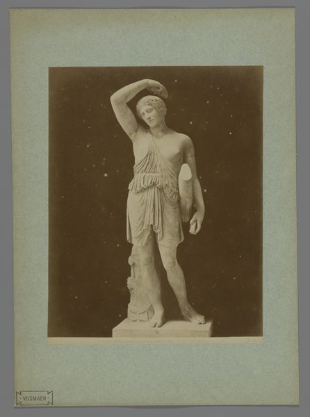 This is an undated photograph of the sculpture "Athena van Velletri" by an anonymous artist. This photo invites us to consider the historical and cultural contexts that have shaped the artistic representation, and modern understanding, of mythological female figures. Athena, the Greek goddess of wisdom, crafts, and warfare, embodies a complex set of attributes that have been reinterpreted across centuries. Here, she's depicted with a blend of strength and serenity. Her poised stance and classical drapery, although idealized, reflect a certain cultural ideal of femininity. We might ask ourselves, does this representation reinforce or challenge traditional notions of gender and power? How does the photograph itself, as a medium, influence our perception of this classical form? The photograph also speaks to the enduring legacy of classical art. It prompts us to reflect on the ways in which we continue to engage with and reinterpret the stories of these iconic figures. It challenges us to consider what they might mean to us today.