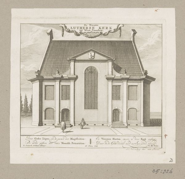 Curator: Looking at this artwork, "Gezicht op de Doelenpoort te Leiden," created between 1786 and 1792 by Carel Frederik (I) Bendorp, it strikes me how meticulously detailed the print is. Editor: My first impression is its formal severity—it feels almost staged, despite being a cityscape. The sharp lines of the neoclassical gate and building create a sense of order and control, lacking organic vibrancy. Curator: Indeed. Bendorp renders the Doelenpoort, a structure already laden with social and political significance, through a lens of Neoclassical ideals—rationality and civic virtue are palpable. Engravings like these were instrumental in shaping public perception and fostering a sense of civic identity during this period. Editor: Right, the architecture is certainly the main protagonist. Yet I can't ignore how the human figures seem diminutive, their potential narratives rendered secondary to the imposing stone structures. Where is the resistance, the unruliness of lived experience that contradicts this aspiration for rational perfection? Curator: That tension is interesting, the contrast between the grand structures and the commoners. In its time, the image functioned as more than mere architectural documentation. Prints like these circulated amongst a growing middle class, constructing their notions of national identity and collective memory through the dissemination of such carefully framed visuals. Editor: Exactly. So this image then, as a vehicle of social engineering. It reflects not just the literal appearance of a landmark but also the power structures that shaped it. The stoic architecture looming over smaller depictions of human lives makes this such a powerful example. Curator: Ultimately, examining the historical and socio-political contexts unlocks hidden dimensions, rendering even seemingly straightforward cityscape prints powerful documents of the late 18th century’s evolving social landscape. Editor: Absolutely, analyzing beyond face value exposes ideological weight that visuals carry. By looking closely, it encourages dialogue and opens us up to consider its role within identity, class, and power.