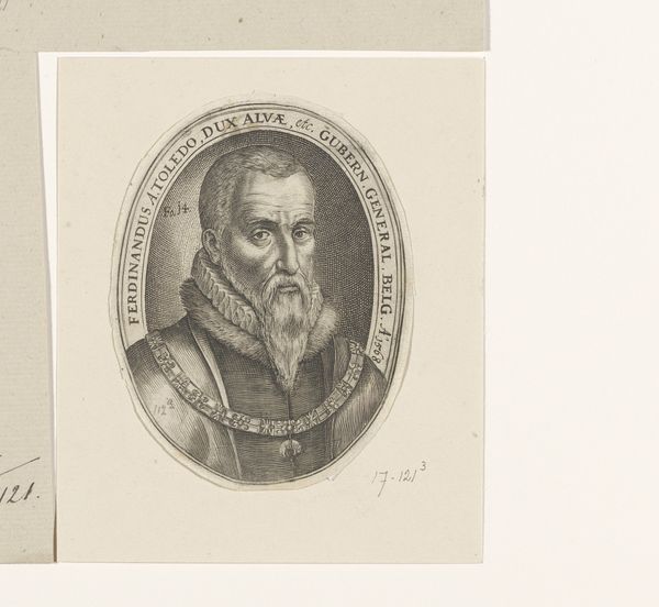 This small print portrays Fadrique Álvarez de Toledo, the Duke of Alva. Though the artist is unknown, it gives us insight into how powerful figures were presented and perceived. The Duke, a prominent figure in Spanish history, was known for his military leadership and his role in the Eighty Years' War, a conflict marked by religious and political tensions. What do you think of when you see this person's stern profile and formal attire? Does it evoke a sense of authority? Consider how dress codes have historically been used to differentiate and establish social hierarchy. Here, the Duke’s image, captured in profile, is framed by an inscription detailing his titles and lineage. As a historical object, the print reflects the social and political contexts of its time, reminding us of the complex interplay between power, identity, and representation. It shows how leaders wanted to be seen.
