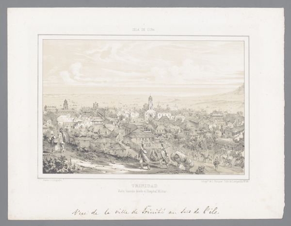 Paulus Lauters made this print of the Clausen district in Luxembourg. The image shows a city celebrated for its fortifications, yet Lauters positions his viewer outside the walls, looking in. What does it mean to position the viewer outside of the established social structures? Luxembourg was a highly contested space in the 19th Century, and the military defenses are a testament to this fact. Yet, we see a quiet scene that almost domesticates what was once a bustling military hub. The artist here is acting as an observer. This print may be seen as a comment on the relationship between citizen and institution, challenging us to consider the ways in which institutions define social space and individual experience. Further research into the history of Luxembourg during the 19th century, along with Lauters' personal history, would provide a deeper understanding of the social and institutional contexts that shaped this work.